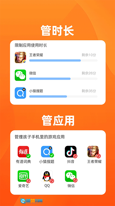 4、高效远程管控:家长可一键锁定孩子手机;能设置应用使用权限与时长;还可控制微信小程序使用,以此规范孩子的用机行为。