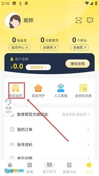 进入【个人】页面后,点击【购买会员】选项,就能进入会员购买的分类选择界面。