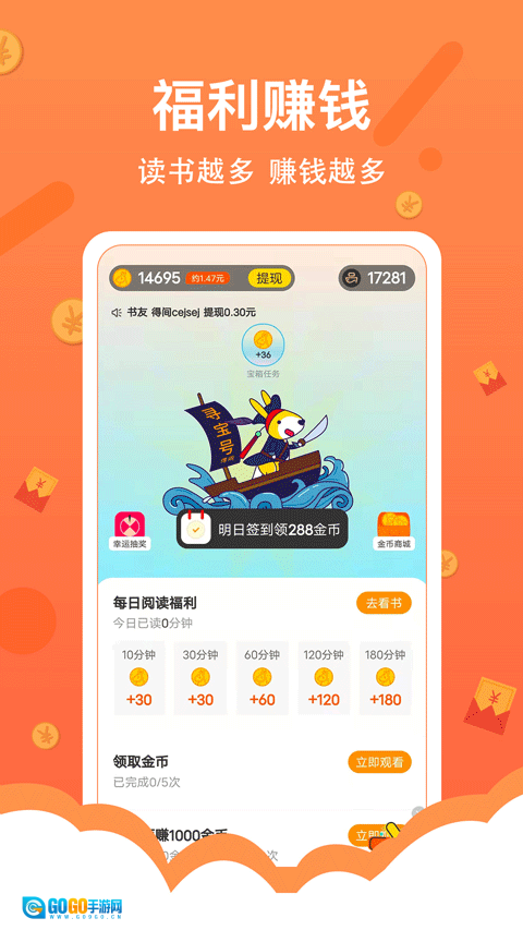 【赚钱】金币福利功领不停,看着小说赚零花!