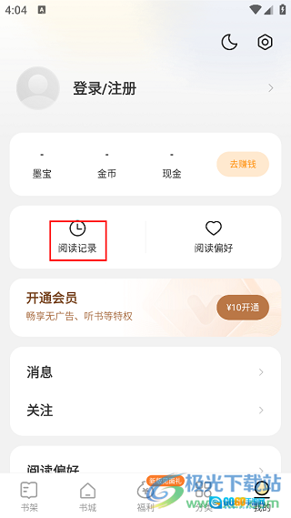 2、进入个人中心界面后,需找到并点击“阅读记录”选项。