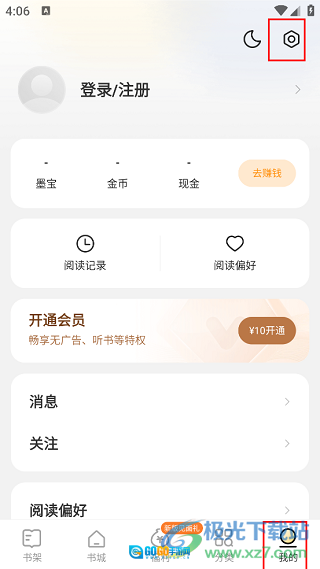 2、进入“我的”板块,登录账号就能同步数据,之后点击右上角的齿轮图标。