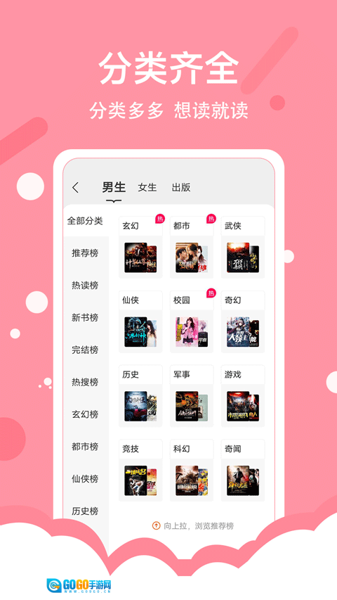 1、分类齐全,全场小说随心读。