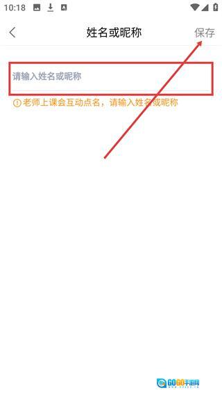 4、进入姓名或昵称的编辑界面,在输入框内填写好相关内容后,点击页面右上角的【保存】按钮,就能完成昵称的设置操作。