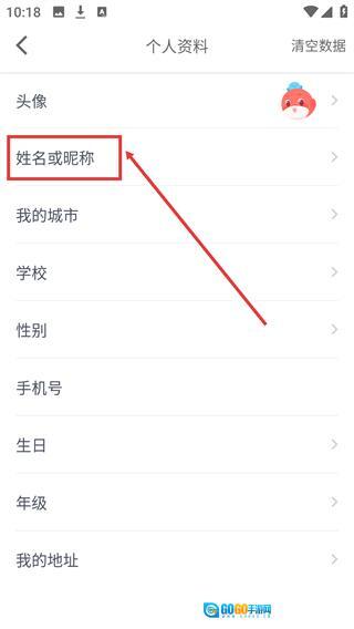 3、进入个人资料页面后,点击【姓名或昵称】选项,即可进入昵称编辑界面。