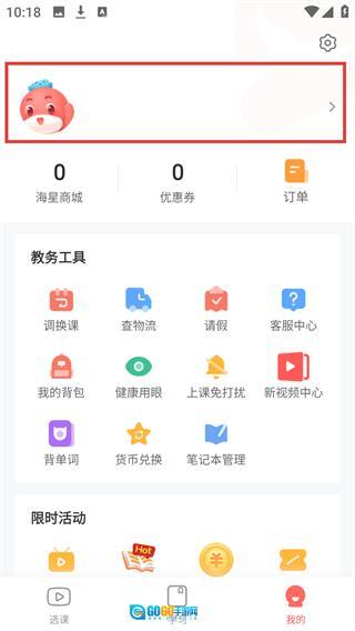 1、在课程界面的底部找到【我的】按钮并点击,即可进入个人中心页面。