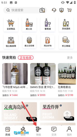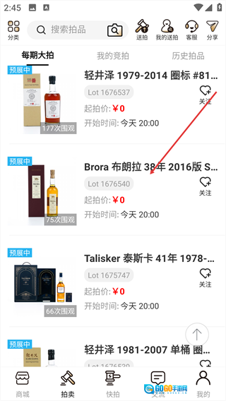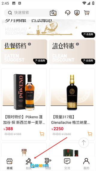此外,平台拍卖系统创新加入风险提示机制,搭配规范的签收验货流程,全方位保障交易安全。无论是入门级收藏者还是资深投资者,酒虫网都能满足其多元需求,助力重塑威士忌文化传播与价值流通的全新生态。1、点击底部【拍卖】选项,进入拍卖功能界面。