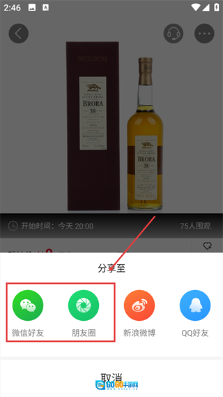 4、在弹出的“分享至”选项里,挑选【微信好友】这类渠道,就能完成该拍品信息的分享流程。