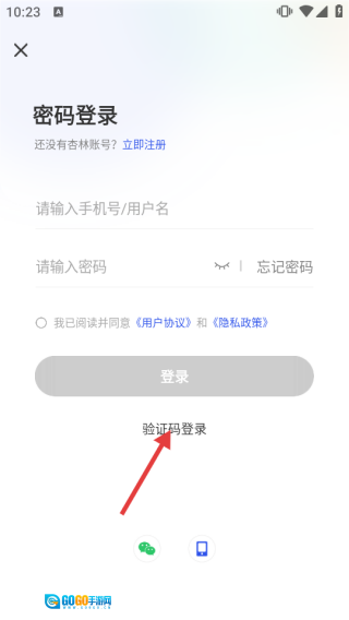 3、在密码登录页面,点击【验证码登录】选项,即可切换至验证码登录界面。