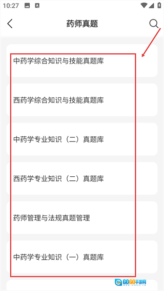 3、点击【药师真题】选项,进入药师真题的科目选择界面。