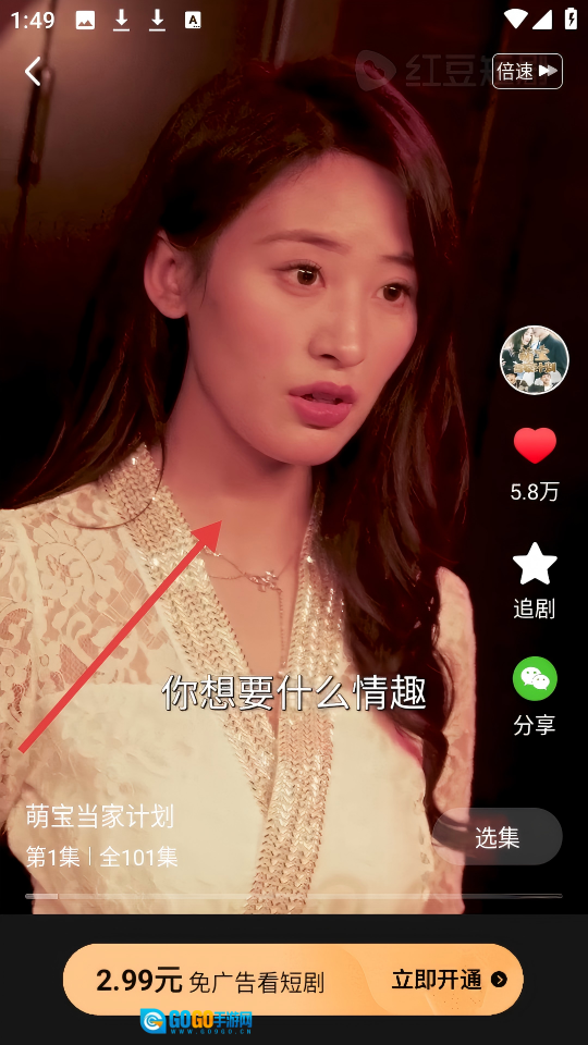在《萌宝当家计划》第1集的播放页面,观众既可以观看该集内容,也能借助页面右侧的按钮完成点赞、追剧、分享等互动操作。