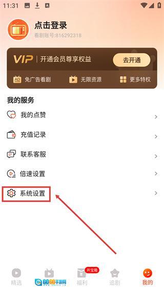 2、进入【我的】页面后,在【我的服务】板块里找到【系统设置】这一选项,点击它就能进入对应的设置页面了。