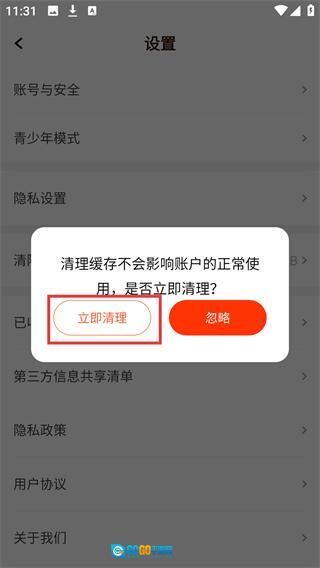 4、点击【清除系统缓存】后,会弹出确认弹窗,提示清理不影响账户使用,点击【立即清理】即可完成缓存清理。