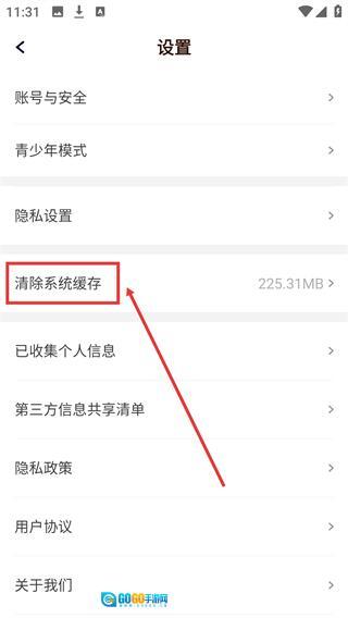 3、进入【设置】页面后,可找到【清除系统缓存】选项,点击该选项即可启动清理流程。