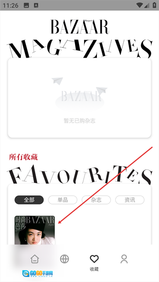 2、在【收藏】页面的【所有收藏】板块,选择目标【杂志】。