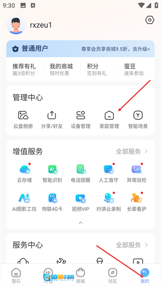 1、打开【我的】页面,于【管理中心】里找到【家庭管理】功能。