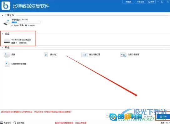 2、在扫描的页面点击内存卡的磁盘进行扫描。