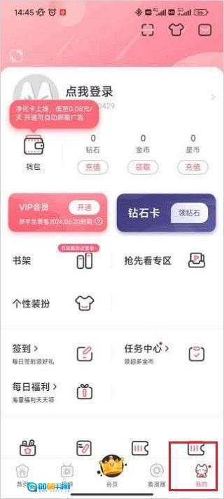 1、在手机上找到“看漫”应用,打开进入软件后,点击右下角的【我的】选项进入个人中心