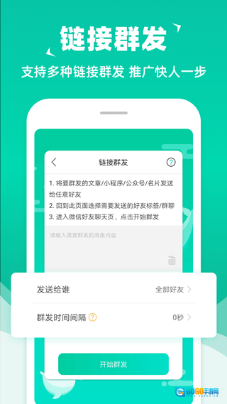 3、具备多种链接群发能力,轻松推广文章、小程序等,流程简单快捷,帮助用户快人一步进行营销活动,扩大传播范围与影响力。