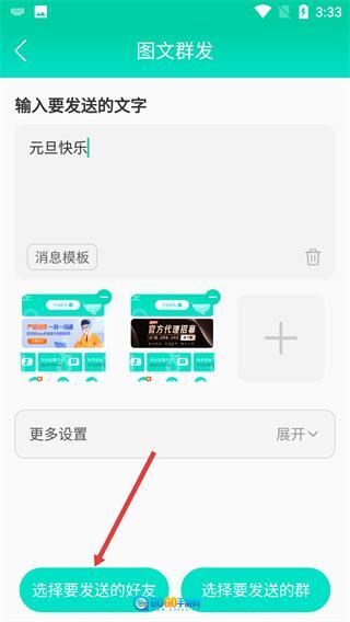 3、在【图文群发】页面输入要发送的文字内容,之后点击【选择要发送的好友】按钮,进入好友选择界面。