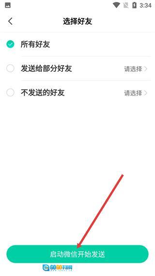 4、在【选择好友】页面选定发送范围后,点击【启动微信开始发送】按钮,完成图文消息的群发操作。
