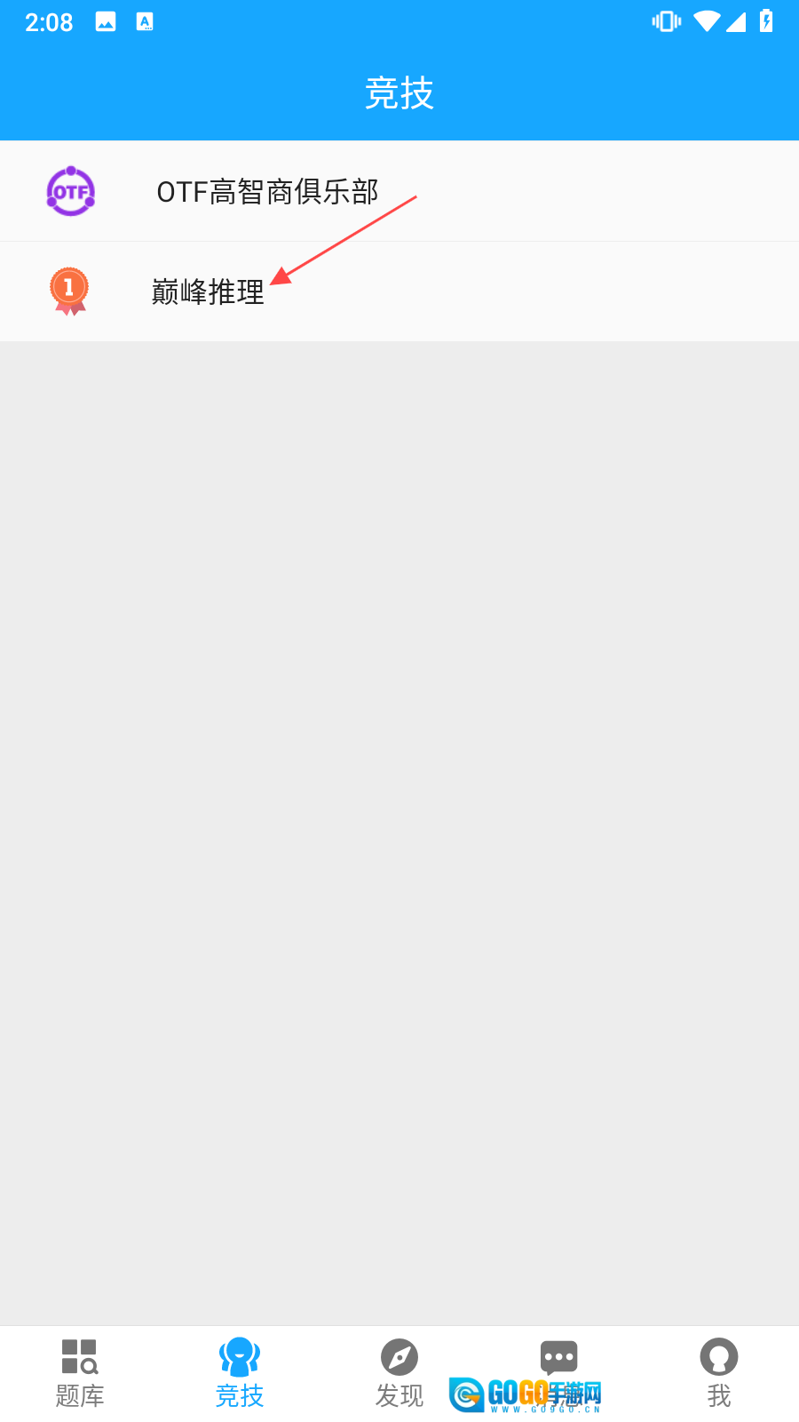 2、切换至【竞技】页面,挑选“巅峰推理”“OTF高智商俱乐部”这类竞技项目,加入答题竞赛,和其他用户一较高下。