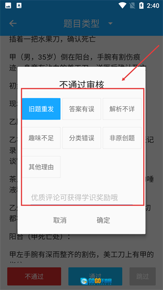 4、若题目存在不合理之处,需选择与之对应的理由,进而完成该题目的审核流程。