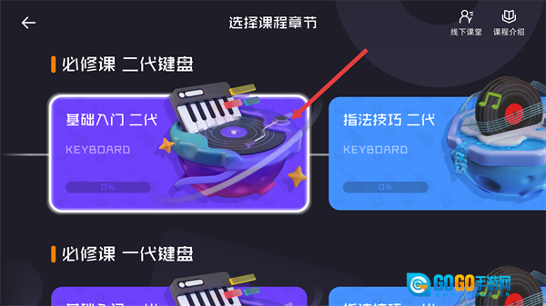 2、进入学琴的课程选择页面,选择目标课程。