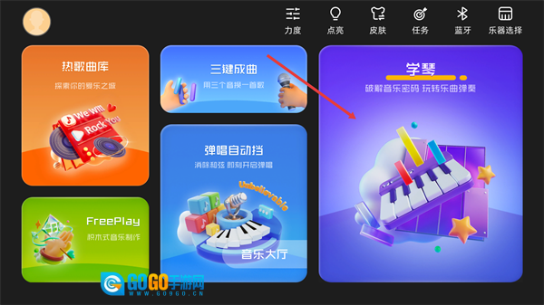 1、在首页,点击【学琴】板块。