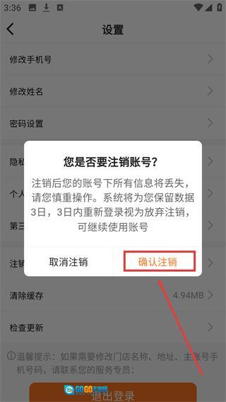 4、在注销账号弹窗中,确认提示信息后点击【确认注销】,即可提交账号注销申请。
