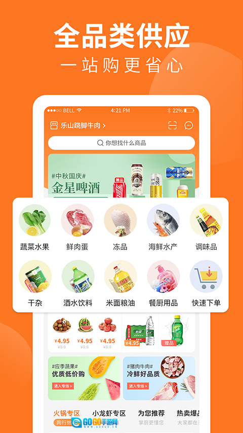 米面粮油、干杂、调味、餐厨用品、酒水饮料、生鲜果蔬等应有尽有。
