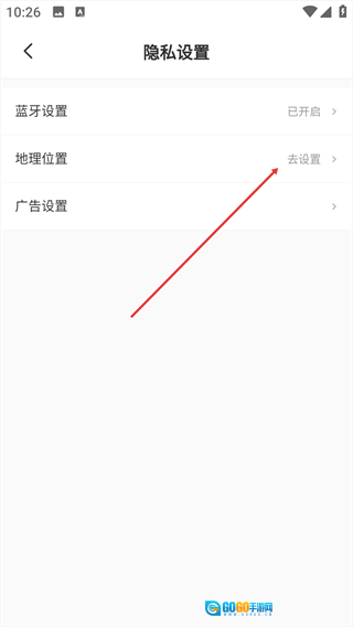 4、找到【地理位置】选项,点击其右侧的【去设置】按钮。