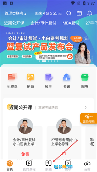 1、点击底部【刷题】选项,进入刷题功能页面。