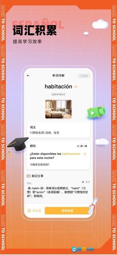 西语GO是一款专为西语学习打造的软件!它配备了每日一练功能和适用于A1阶段的词汇记忆工具,能助力零基础的西语学习者轻松掌握西语!