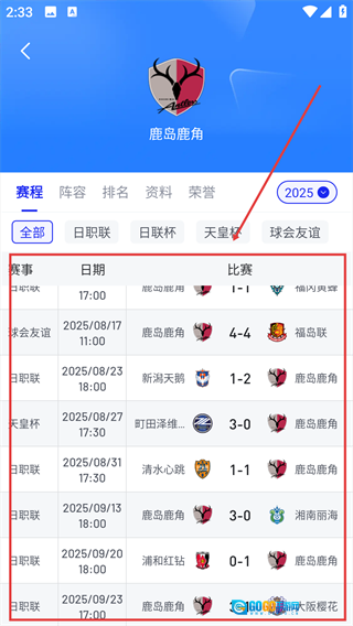 3、在赛事积分表内,点击你想要查看的球队,即可进入该球队的详情页面。