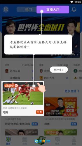 1、观看直播:点击首页,进入直播大厅后,选择正在直播的内容或通过赛程入口观看。