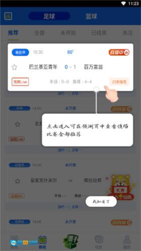 2、赛程界面:点击对应场次即可进入预测页面查看比赛推荐内容。
