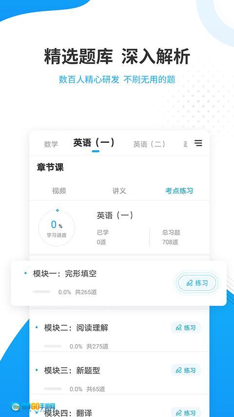 1、考研题库:全面收录近5年考研历年真题、模拟题、每日一练、考点章节练习、高频考点等,题库内含上千万题型精准解析,涵盖医学、英语、英语二、数学、政治等科目。
