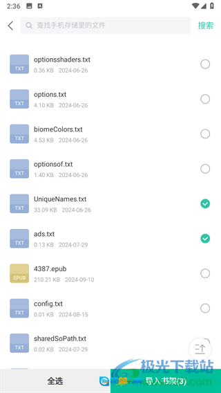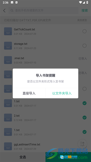 4、接着在扫描出来的文件里挑选你想导入的文件,点击右下角的“导入书架”按钮。