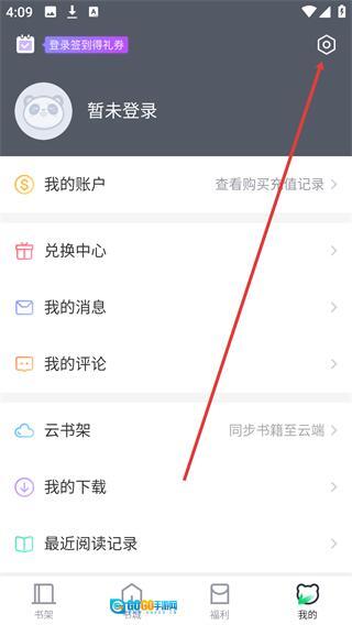 1、在【书架】页面,点击底部导航栏的【我的】按钮,即可进入个人中心界面。