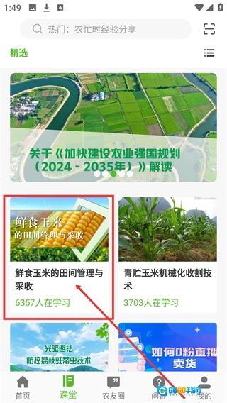 进入【课堂】页面后,找到【鲜食玉米的田间管理与采收】这门课程。