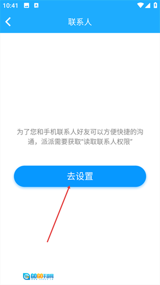 4、当看到“读取联系人权限”的提示时,点击【去设置】按钮,开启相应权限。