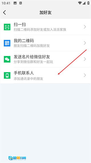 3、在【加好友】页面,选择【手机联系人】选项。