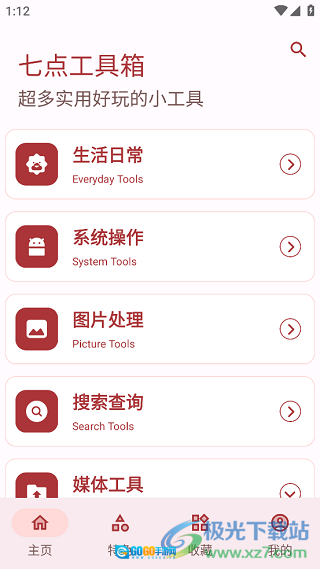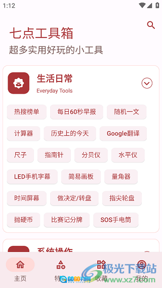 1、首先打开手机里的七点工具箱,能看到主页上有多种实用小工具,点击右侧的箭头就能展开这些工具。