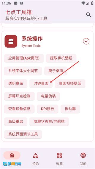 1、打开首页后,在“系统操作”板块里找到【时钟桌面】这一选项并点击它。