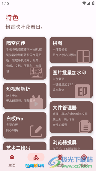 3、点击下方菜单栏中的“特色”选项,即可使用其中一些具有特色的功能服务。