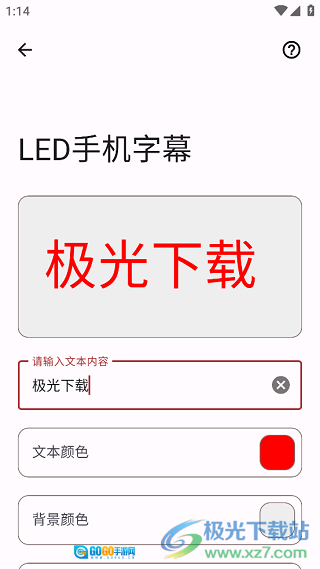 2、例如点击“LED手机字幕”这个选项,就能在这里自定义字幕内容,还可以对文本颜色、背景颜色、字体大小、滚动速度等参数进行设置调整。