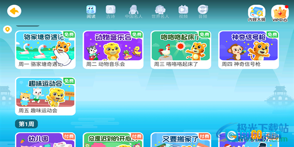 2、点击“国学”板块,就能看到免费小游戏,这些游戏按周一到周五的时间划分,还会标注具体是第几周的内容。