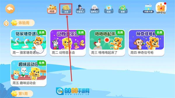 进入相应板块后,找到顶部的【古诗】功能按钮并点击,即可切换到古诗学习专区,浏览相关内容。