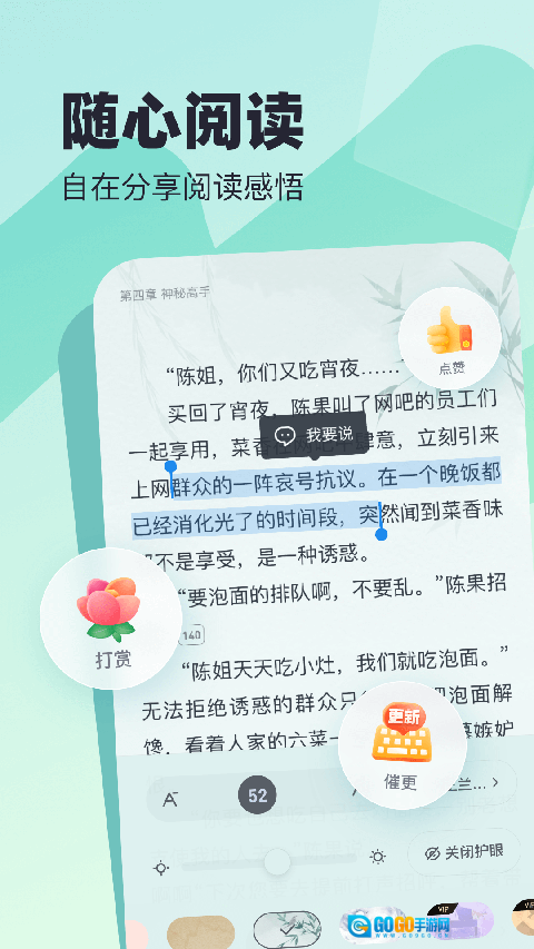 4、海量书库包含原创男生等各类小说,资源丰富且更新及时,用户可快速找到心仪作品,节省查找时间,提高阅读效率。