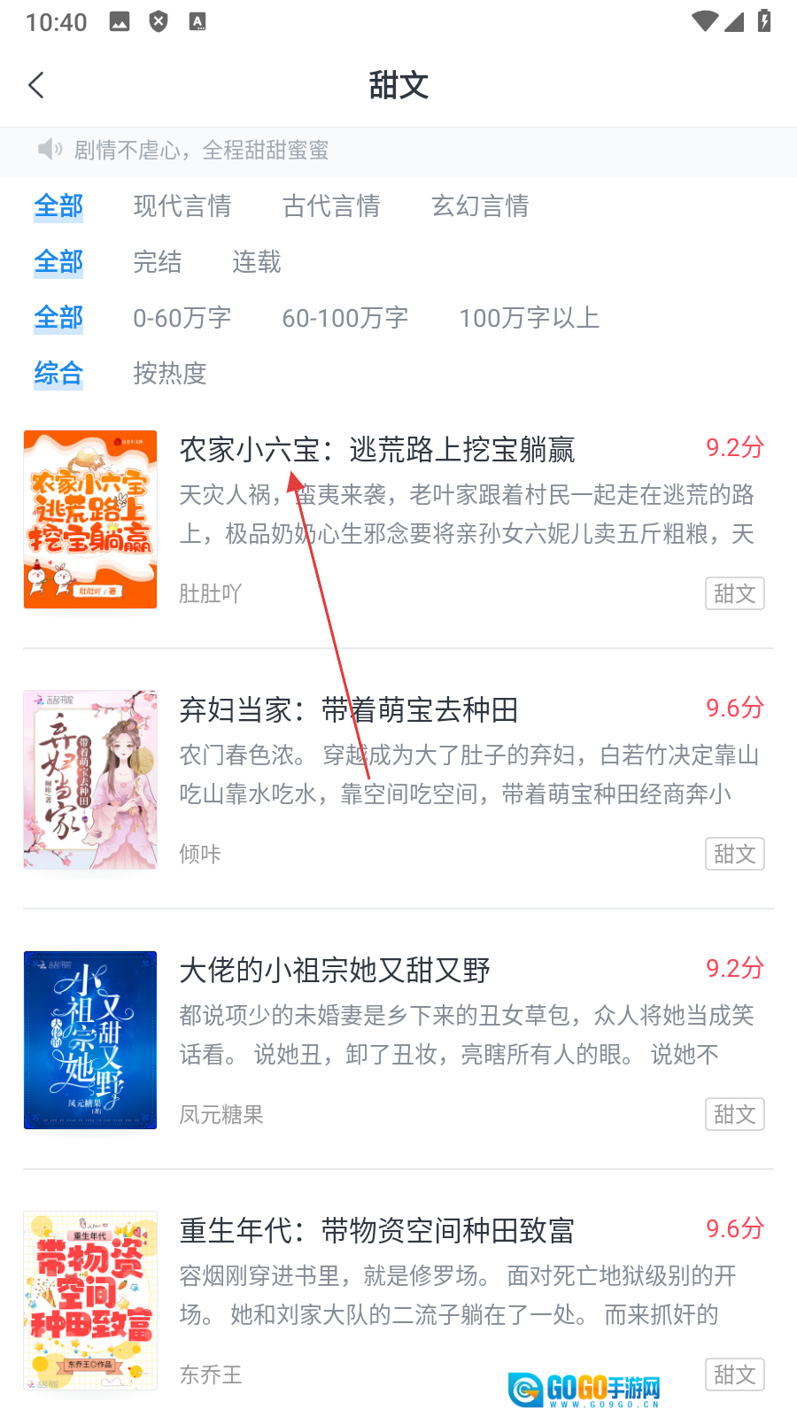 3、在甜文书籍列表页面点击【目标书籍】,进入书籍详情页面。